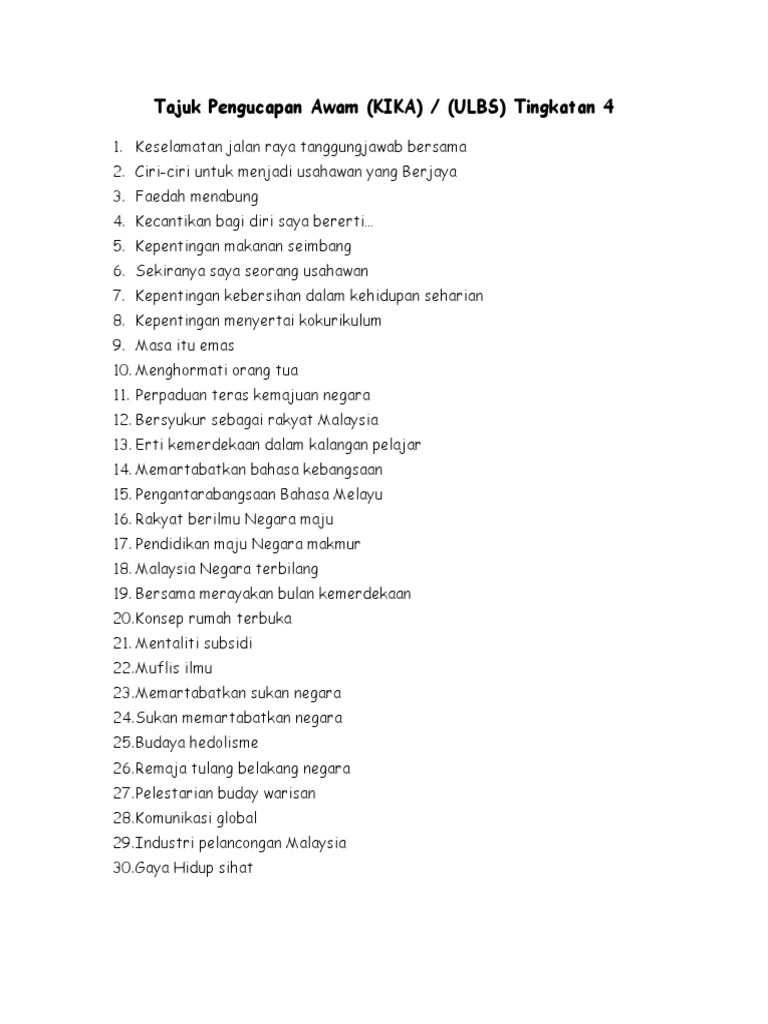 Ini amat penting kerana maklumat yang disampaikan perlu bersesuaian dengan penerimaan audiens. Cadangan tajuk pengucapan awam. Contoh teks pengucapan awam dalam bentuk ceramah.